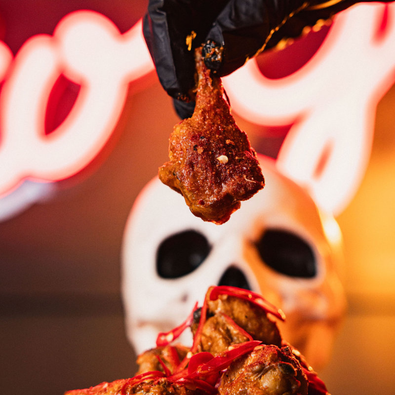 Your Choice Of Chicken Tenders Or Wings With Our Hotter Than Hell Ghost Chilli Pepper Sauce And Fresh Habanero
