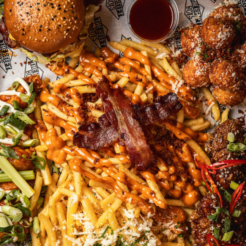Sharing Platter For 2! Two Classic Burgers Of Your Choice, Mega Mac Balls, Bacon Fries, Millionaire Fries, Slaw, Chicken Tenders Of Your Choice, Wings Of Your Choice