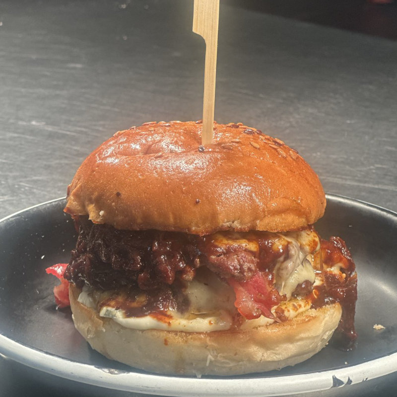 Beef Patty, Chilli Jam, Jack Cheese, Double Bacon And Blue Cheese Mayo