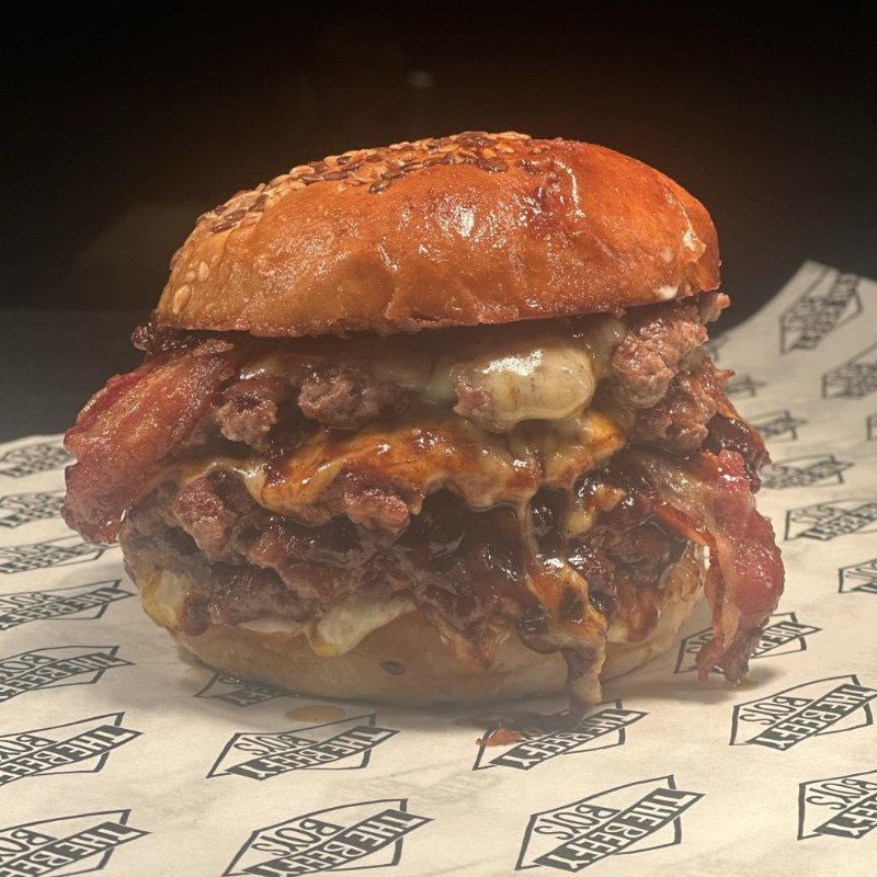 Beef Patty, Chilli Jam, Jack Cheese, Double Bacon And Blue Cheese Mayo