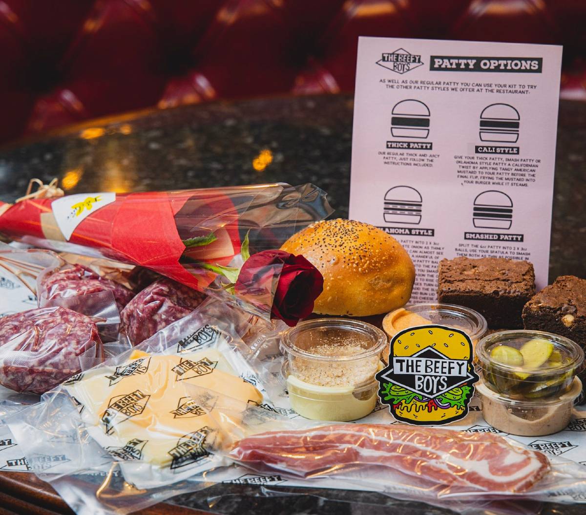 Each box contains enough ingredients to create 2 x double sized world class burgers, 2 brownies for pudding & a red rose to symbolise your love. There’s also a link to a specially prepared valentines playlist to heighten the romance even further!